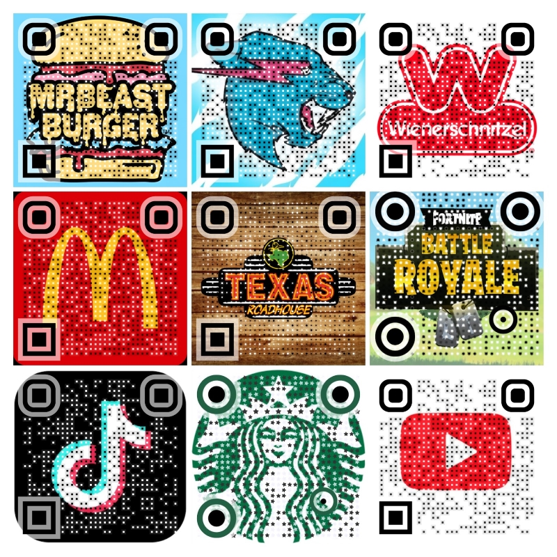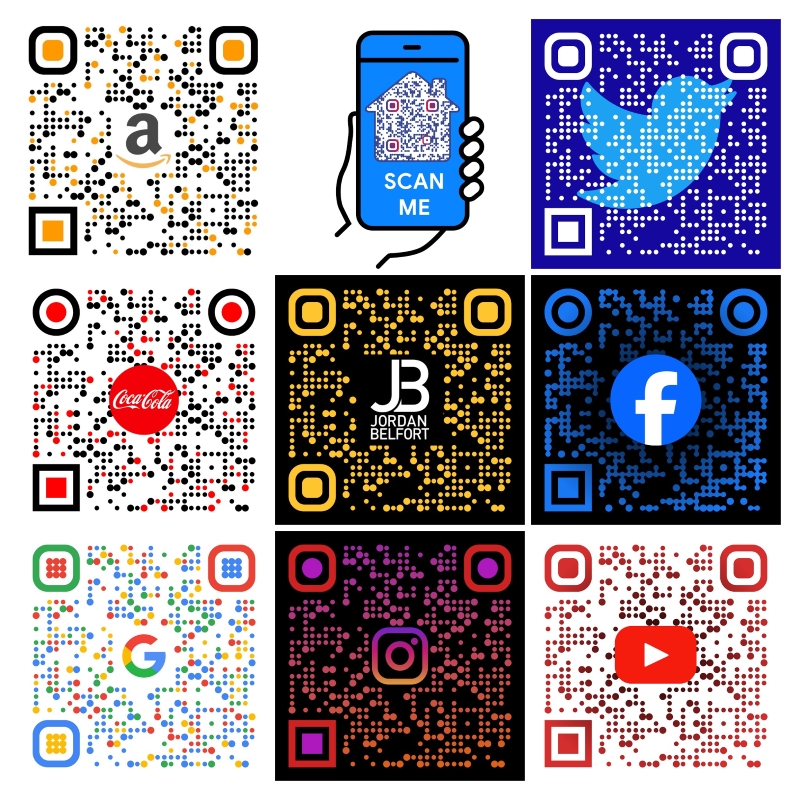 A few custom QR code design examples can be seen below, ranging from a minimalist business logo style all the way to artistic and creative designs.